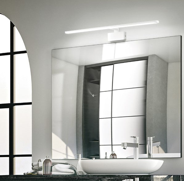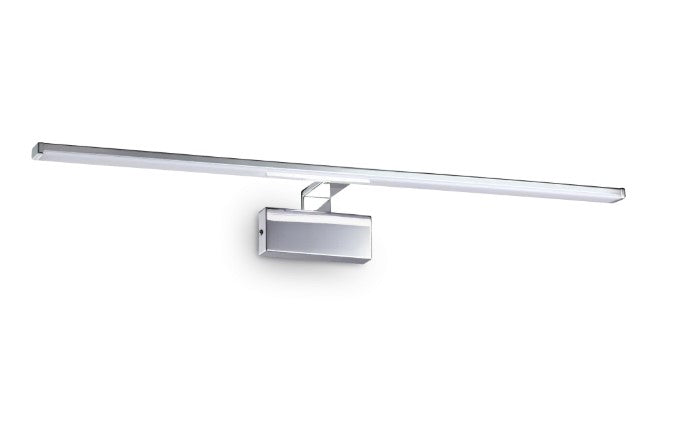 Corp de iluminat metalic cu finisaj din alamă satinată sau crom sau acoperit cu vopsea pulbere albă. Difuzor nedeplasabil din plastic de culoare opal.