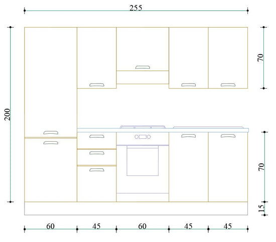 L.255 cm