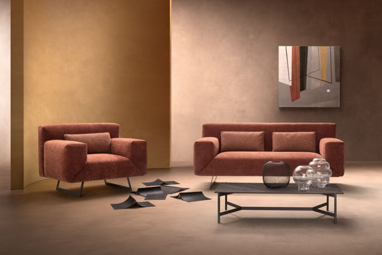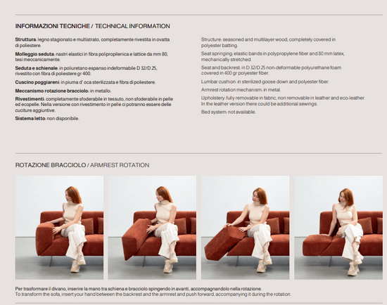 Apartinand Colectiei Essential canapeaua Spin prezinta volume bine definite. Sezutul se extinde datorita rotatiei cotierei, element care se aliniaza cu perna sezutului printr-un simplu gest.