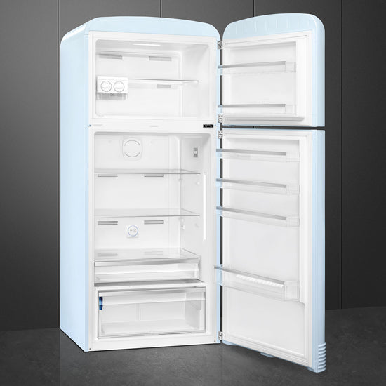 Gama emblematică Smeg FAB combină excelent aspectul cu tehnologia de înaltă performanță. Cu finisaje frumoase și îndrăznețe și curbe rotunde moi care amintesc de designul retro al anilor 1950, există multe opțiuni de culoare și șapte opțiuni de mărime, de la FAB50 ultra spațios până la proporțiile mici ale minibarului FAB5. Frigiderul FAB50 oferă performanțe excelente pentru a completa designul său estetic remarcat.