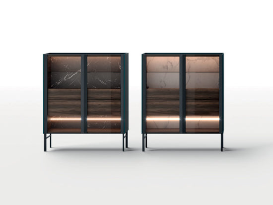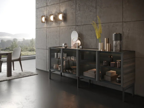 Bufetele Arya pot fi echipate suplimentar cu iluminare interioară opțională. LED-urile integrate pe capacele structurale ale bufetului sunt întotdeauna echipate cu un comutator ON | OFF fixat pe partea laterală a carcasei interne.