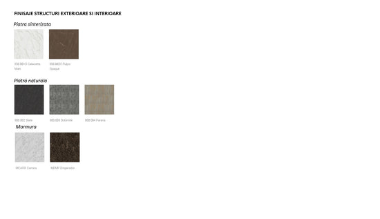 In prezentarea produsului sunt specificate cateva cotatii de pret aferente celor trei tipuri de design pentru finisajele cel mai frecvent intalnite. In galeria photo exista toate tipurile de finisaje si se poate solicita o cotatie de pret telefonic sau pe mail.