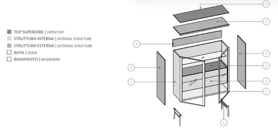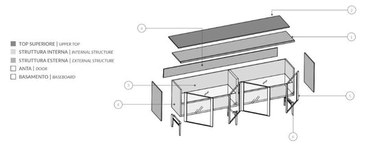 Panourile laterale și din spate reprezintă carcasa bufetului si poate fi gestionat cu finisaje diferite fata de cel al structurii interne.
