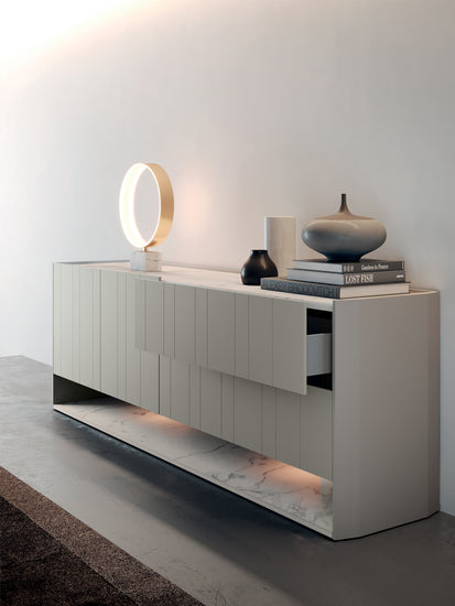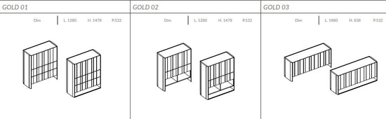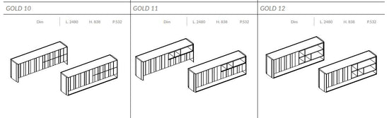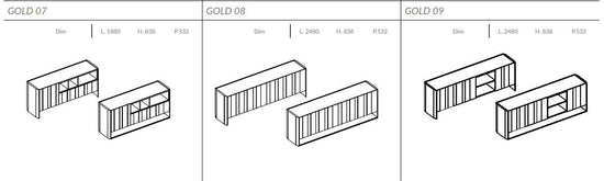 Comoda pentru living Gold cu un design riguros își arată versatilitatea în personalizări și compoziții cu structuri din marmură, lemn și sticlă. Este compusa din sertare cu separatoare interne pentru o organizare ordonată, disponibila în mai multe modele, de la 01 la 12.