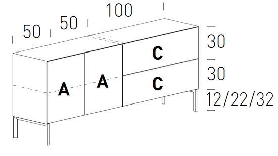 Cu o serie de finisaje diferite pentru bază și alegerea de culori lacuite lucioase și mate, finisaje pentru lemn, sticlă și oglindă, precum și finisajul original cu ardezie naturală, unitatea își schimbă aspectul în funcție de preferințele individuale.