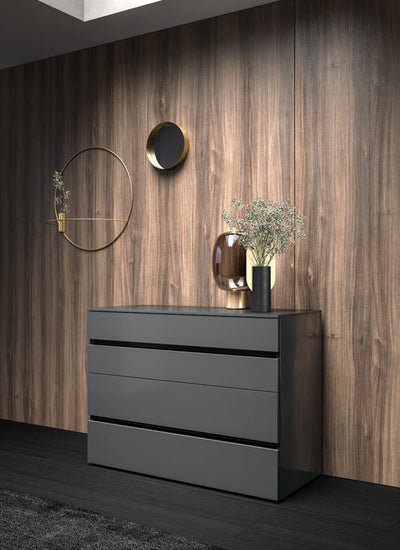 Cornice Night Group are o structură realizată din panouri aglomerate. Sertare cu profil de aluminiu in fata.