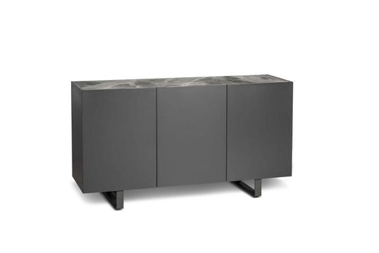 Simplitatea formală și raționalitatea sunt trăsăturile distinctive ale bufetului Pegaso cu ramă din MDF gri închis. Blatul ceramic cu finisaj de marmură gri, punctat de vene îndrăznețe, dar discrete, atrage atenția. Designul discret și dimensiunile eficiente de 150 x 45 x 80 cm fac ca această piesă de mobilier să fie potrivită pentru spații tinerești, proaspete, dar îndrăznețe. O soluție de mobilier care satisface nevoile vieții contemporane.
