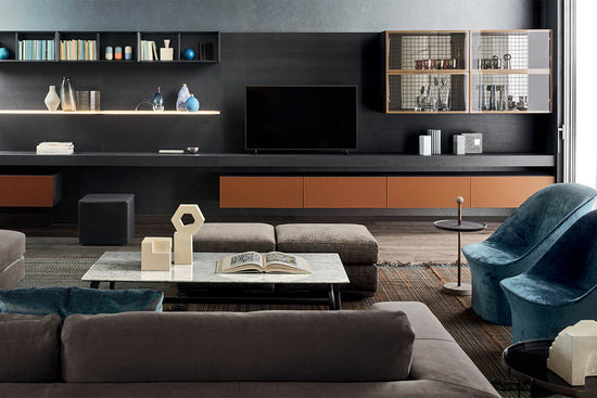 Compozitie de living P 501.Designul geometric se întâlnește cu detaliile sofisticate. Eleganța este cheia redescoperirii frumuseții vieții de zi cu zi. Sistemul modular People este soluția perfectă pentru cei cărora le place să-și vadă ideile prinzând contur, personalizându-și interioarele casei cu libertate și frumusețe rafinată. Carcasa pliabilă în mitra și absența mânerelor creează un design fluid, subtil, cu detalii de lux contrastante, cum ar fi elementele distanțiere, rafturi din sticlă iluminate din spate, fațe noi din piele dură și panouri din spate din marmură materico.