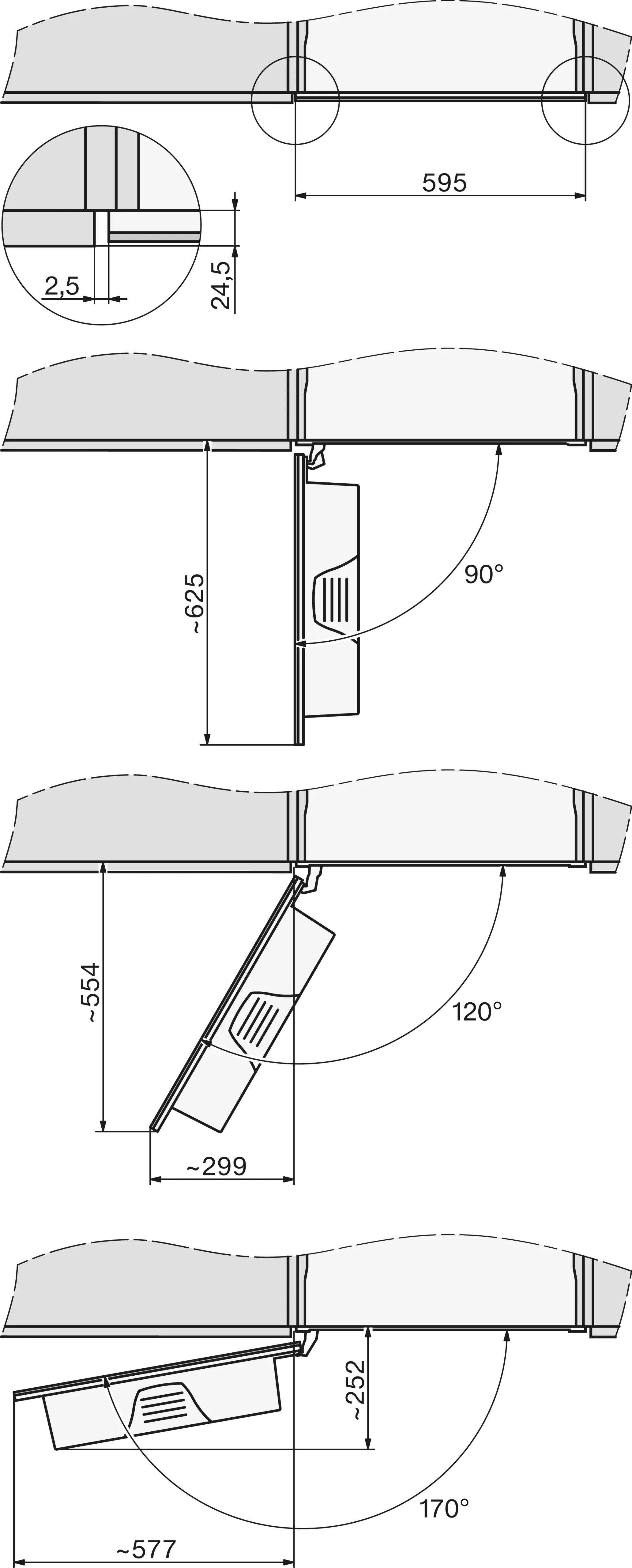 Lățime maximă nișă în mm 568