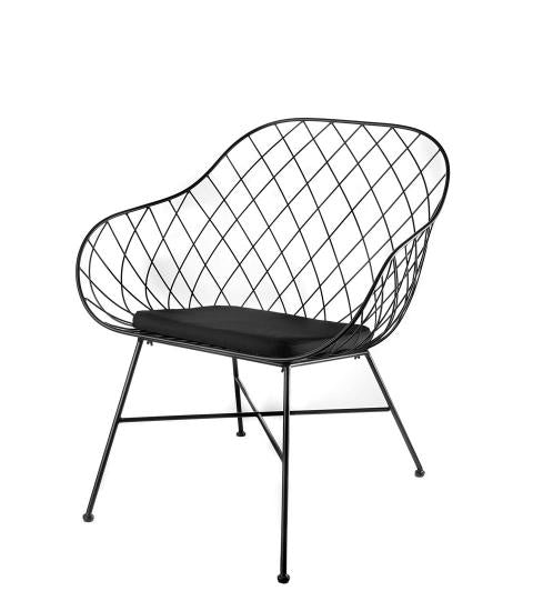 Fotoliu metalic negru cu perna neagra din bumbac. Ideal pentru cei care iubesc stilul urban. Un detaliu cu eleganță minimă pentru a mobila camerele.