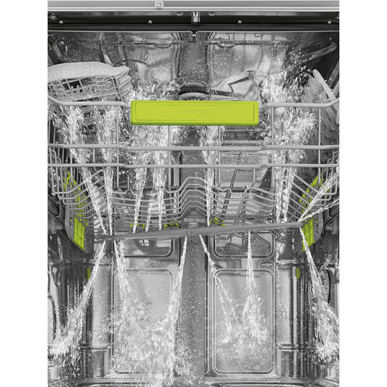 Orbital wash system distributes water evenly throughout the 60cm dishwasher cavity, directing water with precision to ensure an excellent wash. Total Acquastop: In addition to the partial Acquastop protection present in all Smeg dishwashers, some models have an electronic device fitted to the water intake hose, which monitors water levels in the machine, detects leaks in the hose and switches off the water supply immediately when necessary. The work aimed at continuous improvement has allowed the creation of the second generation of the Inverter motor 2.0, characterised by greater efficiency and durability over time,