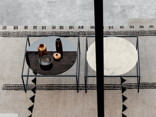 Structura metalica Masa caracterizata prin tuburi acoperite cu pulbere epoxidica din fier de 15x15mm. Disponibil în culorile standard prevăzute și pe culorile de referință cu taxă suplimentară. Blat rotund susținut de o structură transversală inferioară, ascunsă în interiorul profilului blatului. Picioare din cauciuc anti-alunecare integrate în partea inferioară a cadrului.