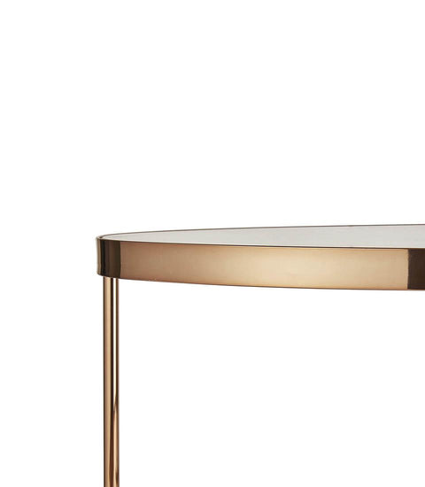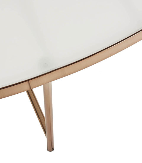 Masuta de cafea ovala din metal si sticla securizata. Acest accesoriu este cel mai bun farmec. Finisajele sale aurii vor oferi o notă deosebit de șic întregului mediu înconjurător.