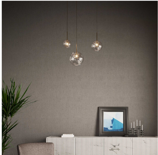 Cadru si brațe metalice cu finisaj cromat sau alamă antică. Difuzoare din sticla suflata transparenta.
