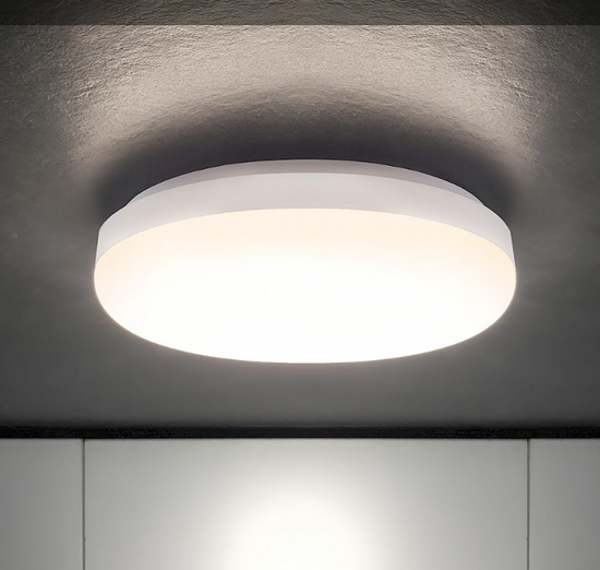 Lampa ce poate fi instalata pe tavan sau pe perete pentru iluminarea difuza a mediului. Grad ridicat de protectie impotriva apei si prafului IP54 Corp din policarbonat, difuzor din policarbonat opac difuzor. Sursa de alimentare incorporata inclusa.