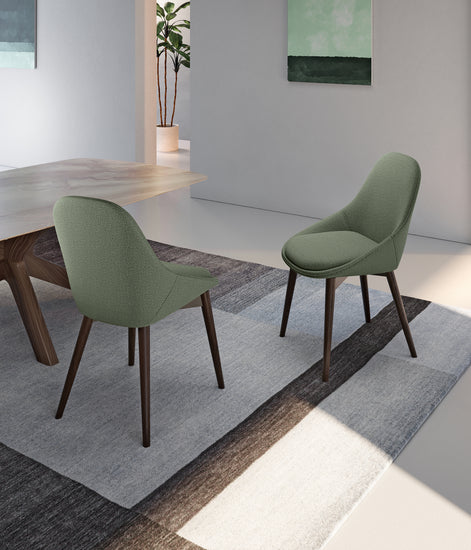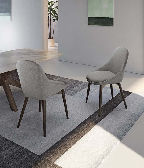 Scaunul Astrid se prezinta ca o piesa de mobilier gratioasa si distincta datorita sinuozitatii formelor rotunjite ale spatarului si sezutului captusit. Își datorează farmecul armoniei structurii din nuc masiv care creează o formă învăluitoare, capabilă să garanteze confort maxim cu stil și eleganță. Imbracat in tesatura gri deschis, verde, maro deschis sau ruginiu, confera zonei de zi o nota de culoare si se imbina armonios cu mesele in stil contemporan si modern.