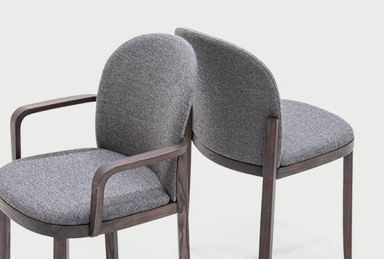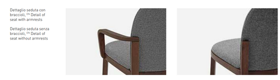 Îmbinând o estetică clasică și o abordare contemporană a utilizării lemnului, Orchestra apare ca un scaun care transmite ideea de familiaritate și fiabilitate printr-un limbaj sofisticat și controlat cu grijă. Philippe Tabet a realizat inteligent un design atât de rafinat și interesant, încât Orchestra este elocventă și atractivă din orice unghi. Cu secțiunea lor pătrată, picioarele din spate sunt ușor întinse, transformându-se în cotiere pe măsură ce se deplasează în sus, desenând un contur curbat și frumos tactil. Aceste linii neîntrerupte conferă un aspect curat, aspect coeziv asupra întregului rezultat. Designul ergonomic al scaunului căptușit oferă confort, înfășurare rotundă și susținere a corpului. Orchestra este perfectă pentru orice cameră a locuinței, de la bucătărie la birou sau chiar dormitor, și vine și într-o variantă fără cotiere, în plus la birou.