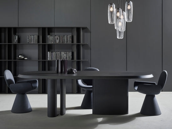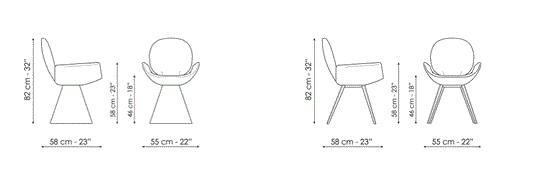 diferite forme care se combină pentru a crea un ansamblu armonios datorită tapiterie din stofa sau piele care o acoperă complet: spătarul circular se varsă în scaunul mare și întregul este susținut de o bază conică evazata. Youpi este disponibil și cu patru picioare metalice.