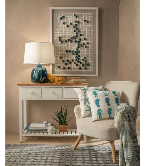 Lampă de masă din ceramică cu abajur din material textil. Elegant și rafinat, oferă o strălucire deosebită sufrageriei tale.