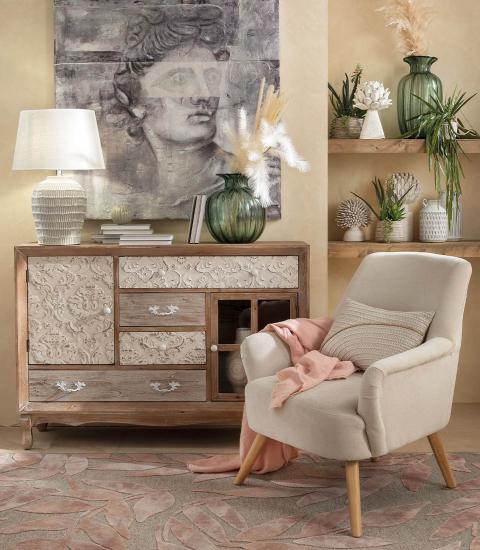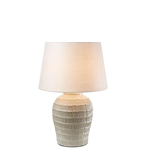 O lampă de masă din ceramică lucrată cu abajur din material textil. Întâlnirea dintre sufletul artizanal și eleganță. Un accesoriu de mobilier perfect pentru a înfrumuseța o casă intimă și mereu primitoare.