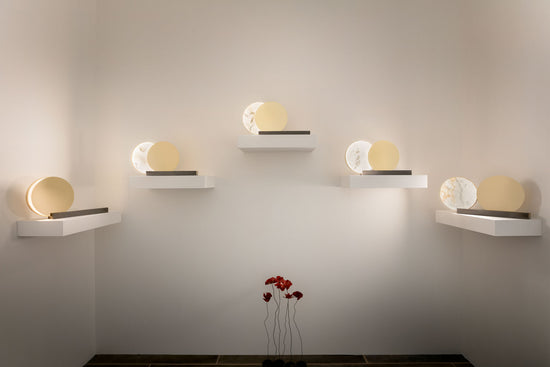 Antiteza dintre lumină și întuneric, dintre Soare și Lună, este veșnică, ca parte a aceluiași flux de existență. Multe semnificații alegorice au fost date relației necesare dintre două elemente care există fiecare ca o consecință a celeilalte. Noua lampă Alchemie T, proiectată de Giulia Archimede pentru Catellani & Smith, investighează această dimensiune ale cărei componente sunt diametral opuse, dar mereu, și pentru totdeauna, conectate. Alchemie T este o sculptură rafinată compusă din două discuri: primul, realizat din alabastru și iluminat de LED-uri, rămâne fix, în timp ce cel de-al doilea, din alamă, alunecă pe o bază de cale din calcar Medea doar cu o ușoară atingere de mână. Interacțiunea dintre lumină și umbră atinge apogeul în momentul în care cele două discuri se suprapun și aproape imită o eclipsă.