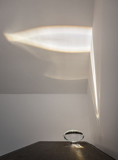 Atman a fost primul experiment al lui Enzo Catellani cu o sursă de lumină LED, o idee care i-a venit întâmplător sau poate prin magie. Totul a început cu o călătorie în India, unde a intrat în contact cu intensitatea unei culturi care îmbină tăcerea și haosul, spiritualitatea și mizeria. Aici Enzo Catellani a descoperit pietrele sfinte ovale și a decis să recreeze aceeași formă folosind sticlă. Numele „Atman” provine dintr-un cuvânt sanscrit care înseamnă „suflet”.