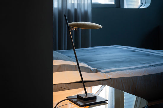 disc lacuit negru / tijă satinată / bază neagră/cablu/dimmer