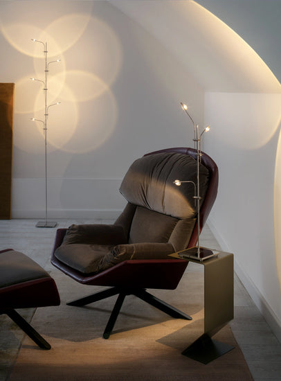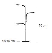 bază și structură din metal nichelat, bețe de cupru nichelate, lentilă de sticlă detașabilă, fire albastre, dimmer nichel/negru