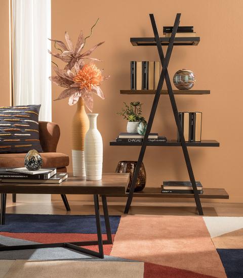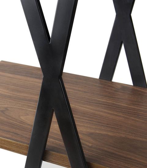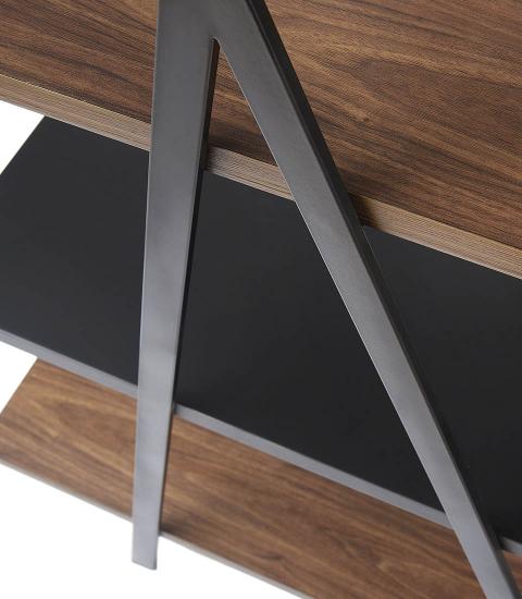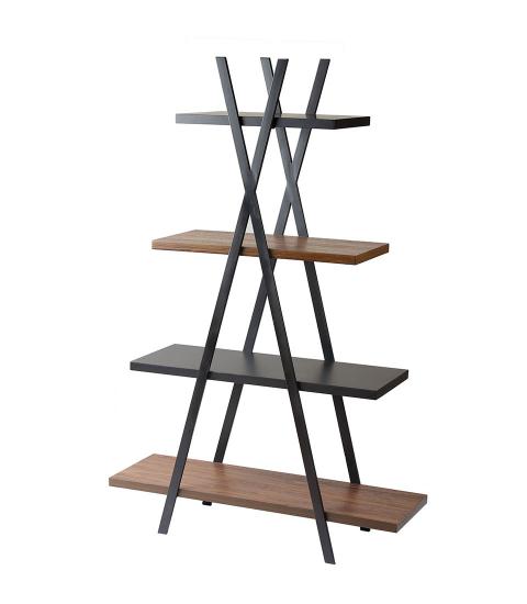 Bibliotecă cu 4 rafturi cu structură metalică neagră și rafturi din MDF melaminat de culoarea lemnului și negru. Accesoriul de mobilier perfect pentru proiectarea unui mediu modern și sofisticat. Ideal de combinat cu măsuța de cafea și consola lumii Contemporane.