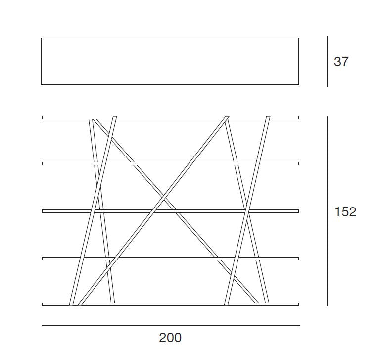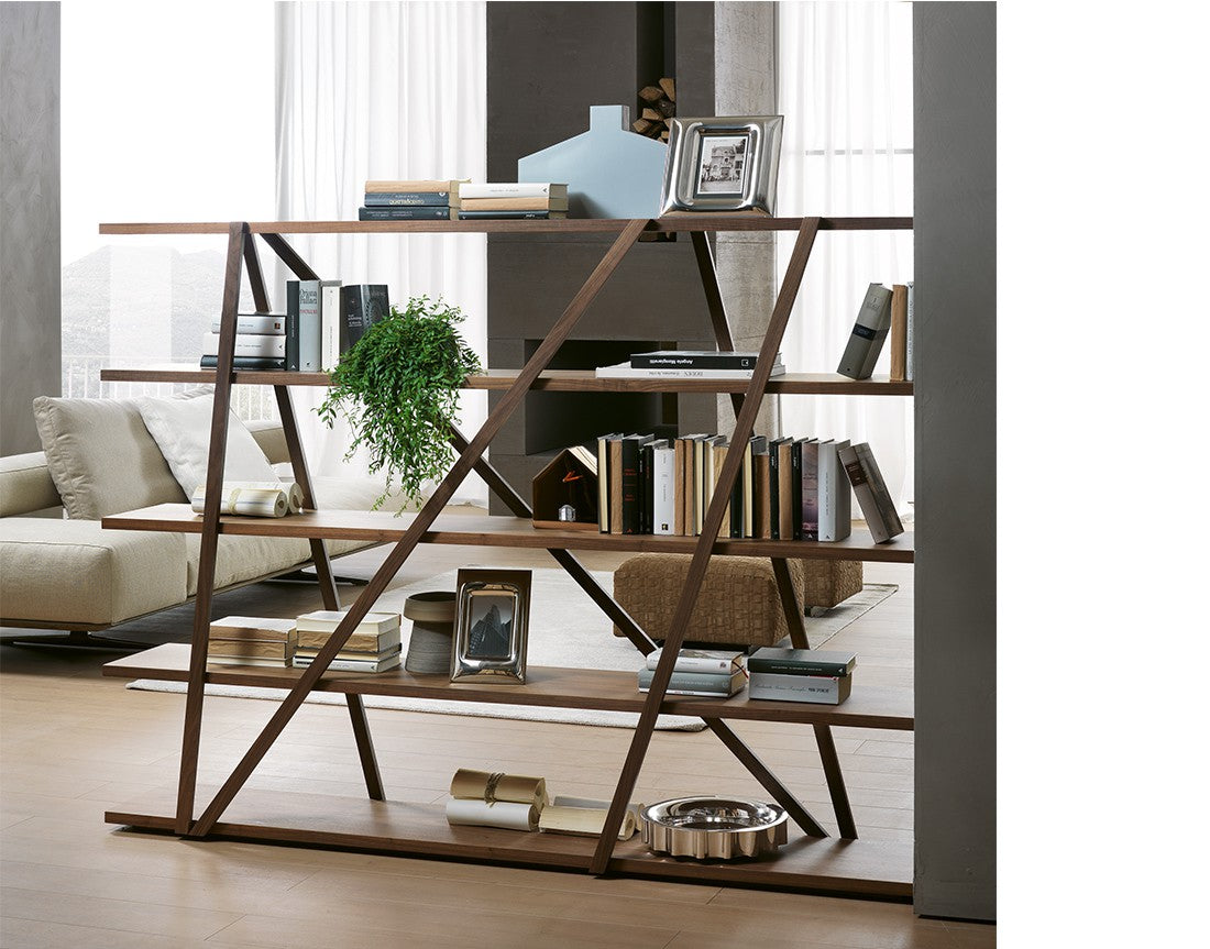 O piesă de atracție vizuală remarcabilă, această bibliotecă se mândrește cu un design atractiv și original. Are o structură verticală și diagonală din aluminiu, furniruită din nuc canaletto și cinci rafturi din lemn furniruit. Un plus versatil și funcțional pentru o casă contemporană.