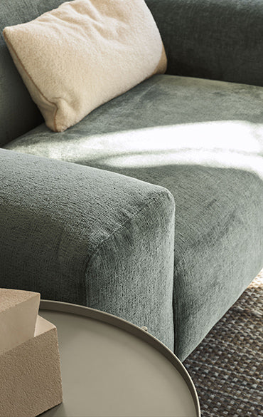 și loveseat - vă permit să creați o gamă largă de configurații personalizate, răspunzând la diferite nevoi functionale si stilistice. Absența cusăturilor frontale sporește estetica canapelei și mai rafinată: țesătura se odihnește delicat pe spătar și șezut ca pe o a doua piele, sporindu-și volumele și geometriile.