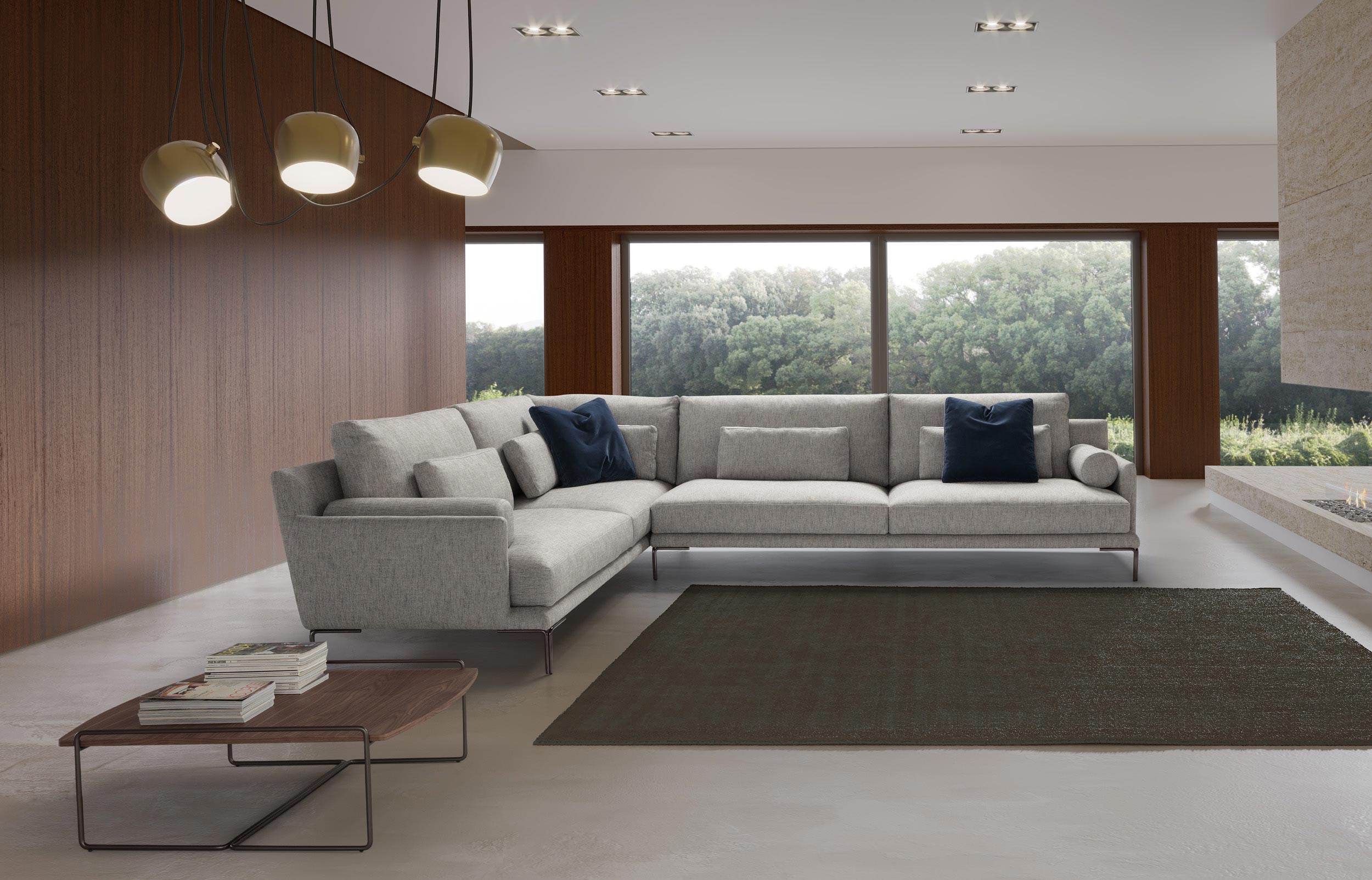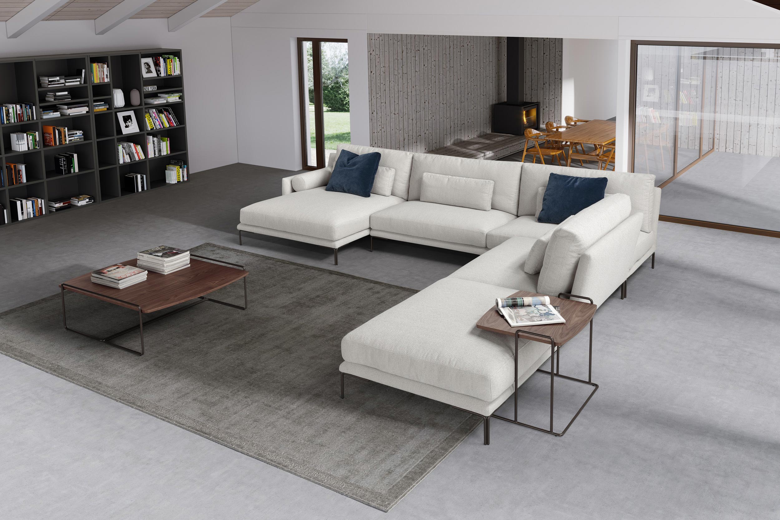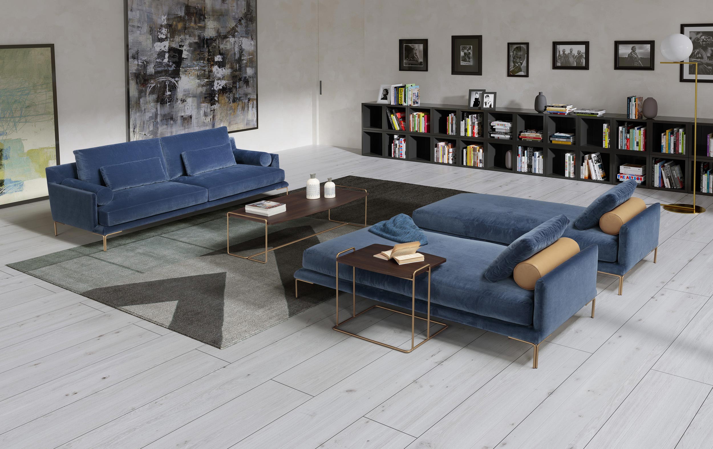 Plug-in este o colecție de canapele bazată pe un design nou, dar care trage din trecut prin utilizarea de perne rulante și forme riguroase care exprimă bunăstare și confort. Picioarele elegante realizate dintr-o pereche de tije modelate în unghi drept susțin scaunele generoase și moi.
