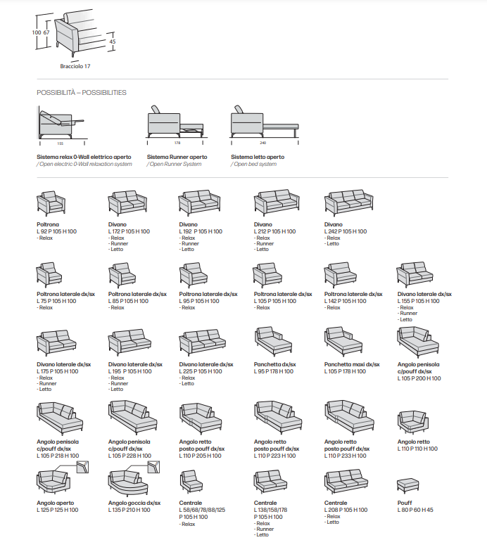 Liniara : L.212 cm P.105 cm H.100 cm