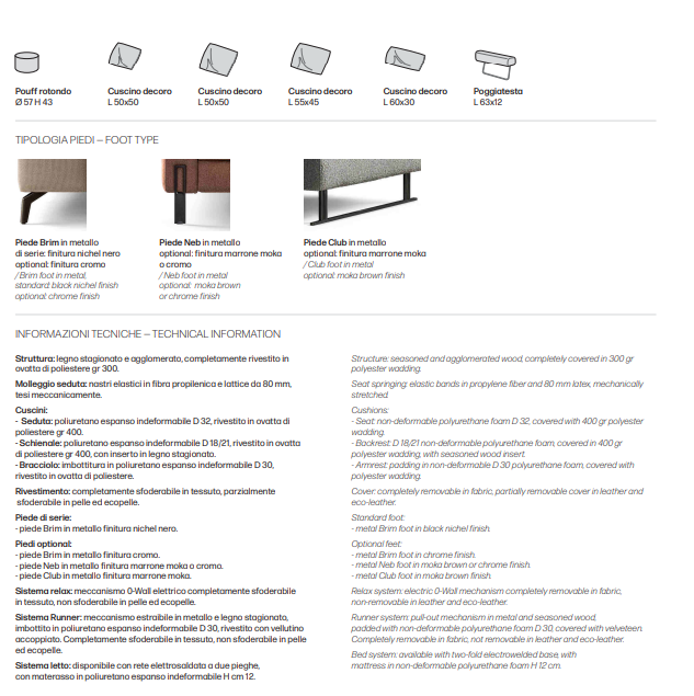 Canapeaua este in totalitate dehusabila pentru variantele din tesatura si partial pentru cele din piele. Poate fi extensibila, iar pentru alegerea finisajelor avem o gama larga de culori si materiale.