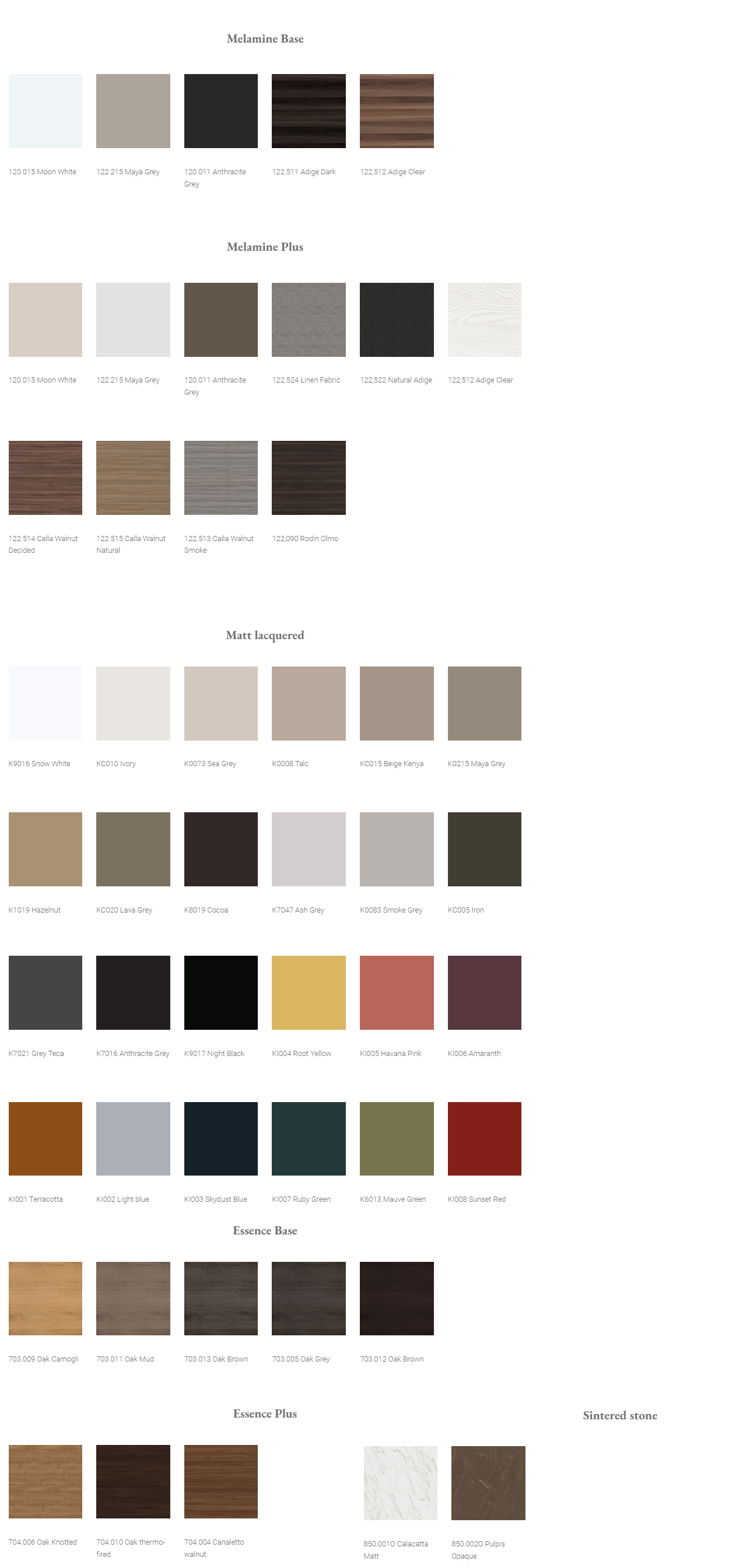 Restul compozitiei este disponibil in toate finisajele prezentate, variantele Esenza Base si Melamine Base avand preturi mai accesibile.