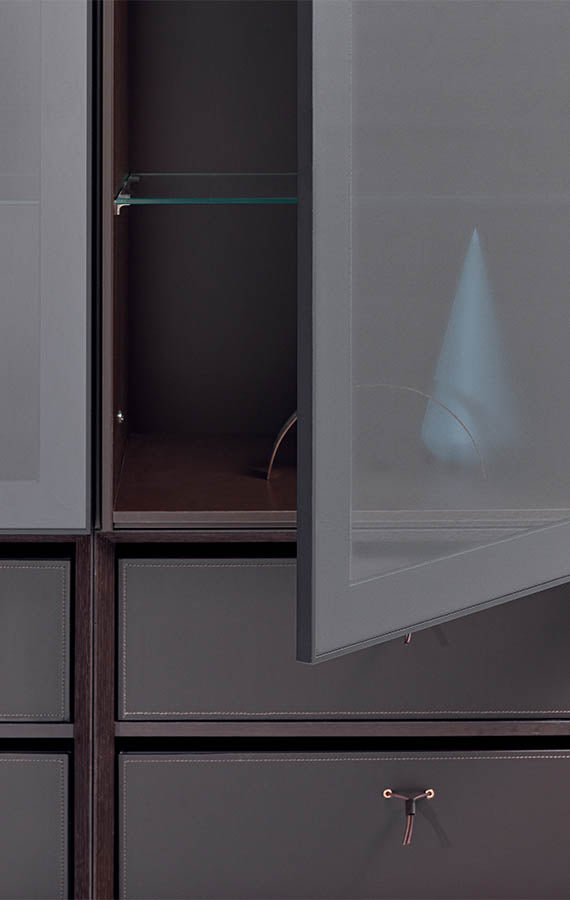 Copozitie living P512.Designul geometric se întâlnește cu detaliile sofisticate. Eleganța este cheia redescoperirii frumuseții vieții de zi cu zi. Sistemul modular People este soluția perfectă pentru cei cărora le place să-și vadă ideile prinzând contur, personalizându-și interioarele casei cu libertate și frumusețe rafinată. Carcasa pliabilă în mitra și absența mânerelor creează un design fluid, subtil, cu detalii de lux contrastante, cum ar fi elementele distanțiere, rafturi din sticlă iluminate din spate, fațe noi din piele dură și panouri din spate din marmură materico.