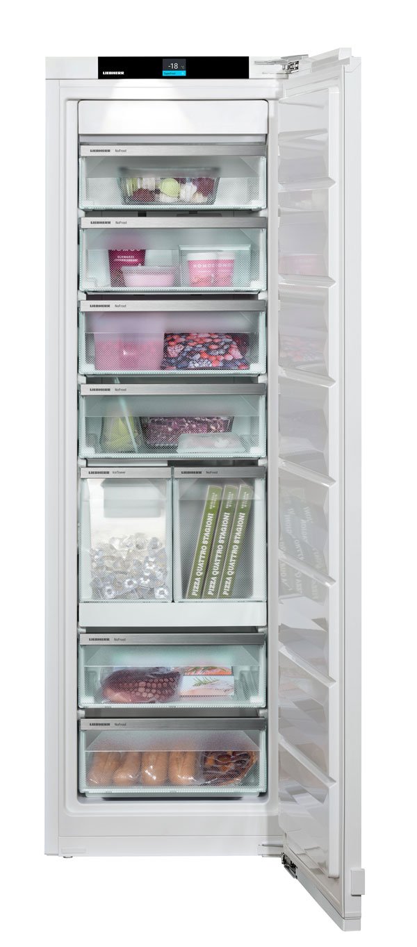 Graţie rezervei de cuburi de gheaţă de 5,7 kg, sistemul IceTower asigură condiţiile ca băuturile reci să nu se termine niciodată la petrecerea dumneavoastră. Lopăţica pentru cuburi de gheaţă şi placa extensibilă pe şine telescopice fac posibil un acces confortabil la cuburile de gheaţă. Datorită tăvii suplimentare de inserţie, puteţi depozita şi cantităţi mai mici de gheaţă şi puteţi păstra dedesubt alimentele congelate. Sertarul alăturat oferă spaţiu de depozitare pentru articole congelate.