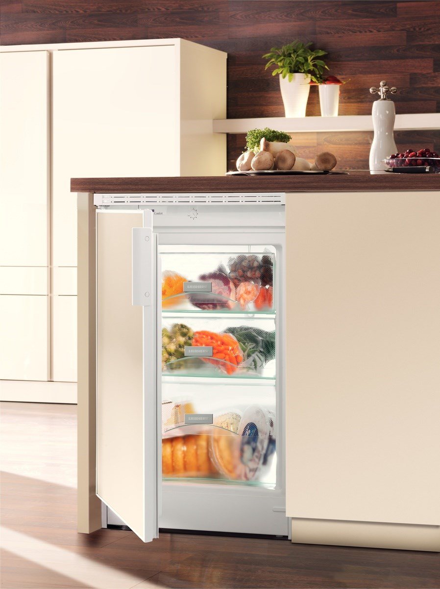 La toate congelatoarele cu NoFrost şi SmartFrost, sertarele şi rafturile intermediare din sticlă aflate dedesubt pot fi uşor îndepărtate. Aşa a fost creat VarioSpace - sistemul practic pentru spaţiul de depozitare suplimentar, astfel încât se creează spaţiu pentru produsele alimentare voluminoase congelate.