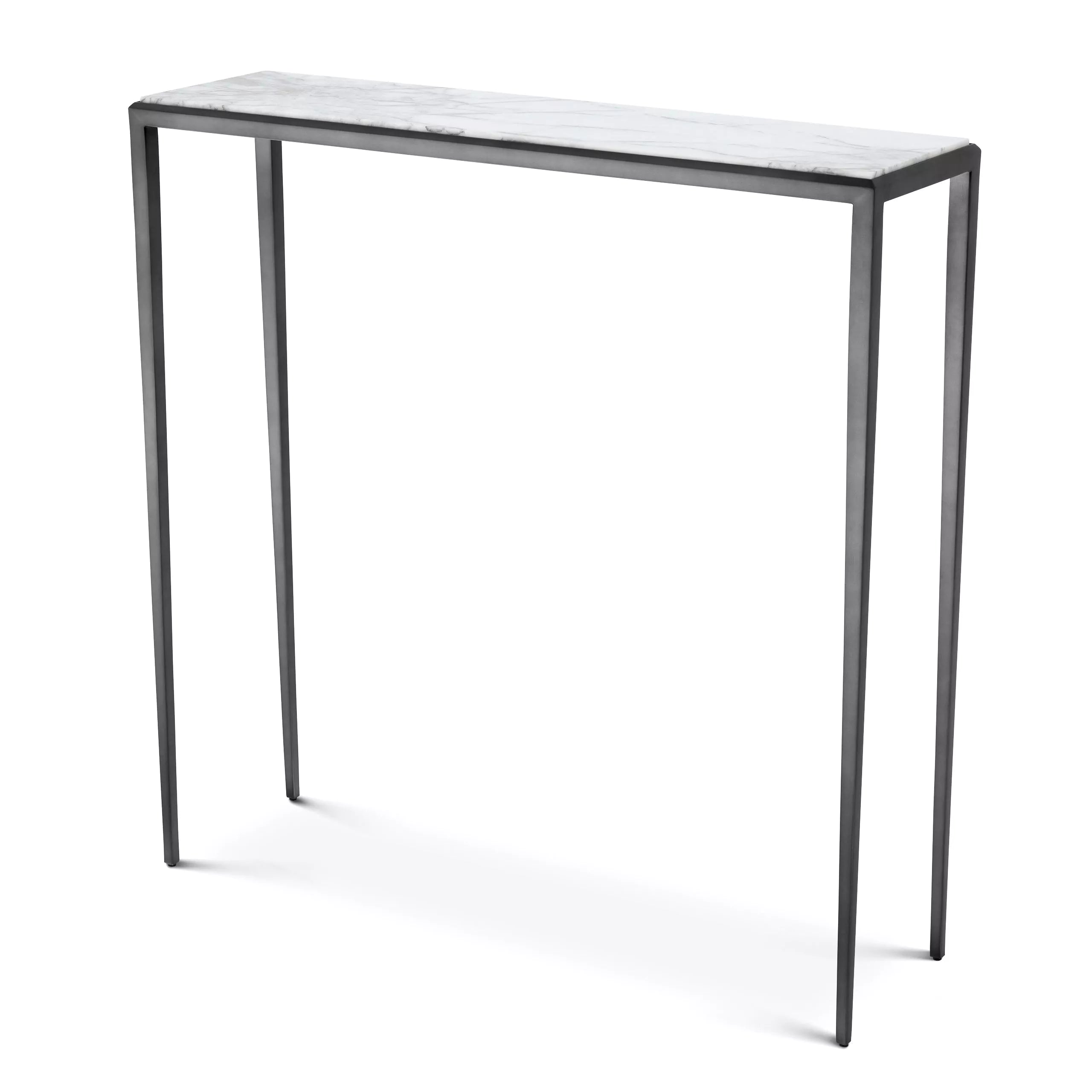 Adăugați un stil atemporal livingului dvs. cu consola elegantă Henley L. Această consolă sofisticată are un cadru finisat auriu și un blat frumos de marmură albă, cu accente subtile de tonuri de gri și negru.