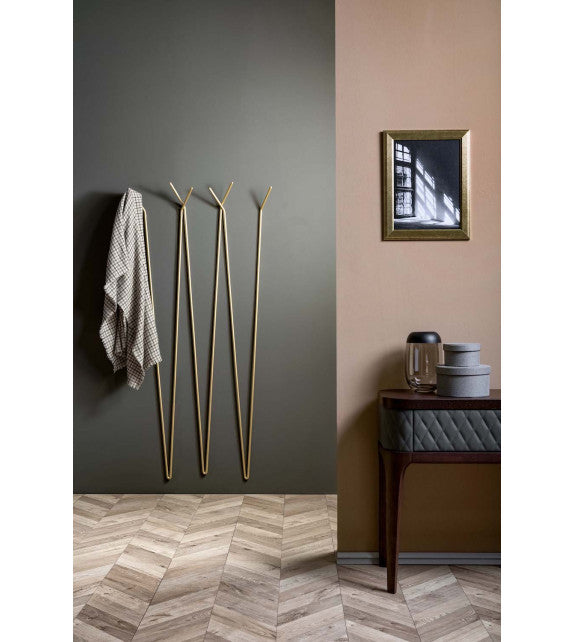 Umeraș din sârmă metalică lăcuită cu un design minimalist și funcțional. Disponibil în variantele lăcuite cu auriu mat, gri carbon și bronz piatră.