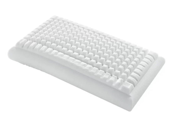 Perna antialergica, dreptunghiulara in Aquacell UltraSoft cu forme 3D in relief cu efect de masaj, disponibila in trei variante: Standard 10 (h 10 cm), Inalta 13 (h 13 cm) si Maxi 15 (h 15 cm).