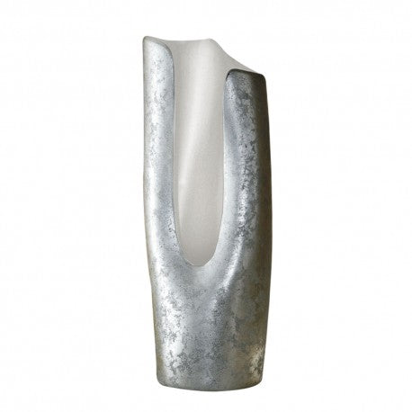 Vaza ceramica, exterior foita aurie sau argintie, interior alb mat si invers.