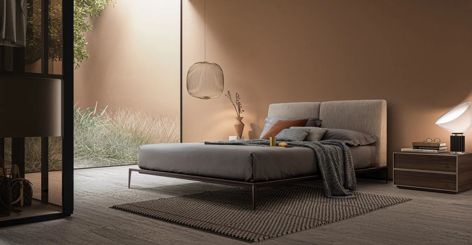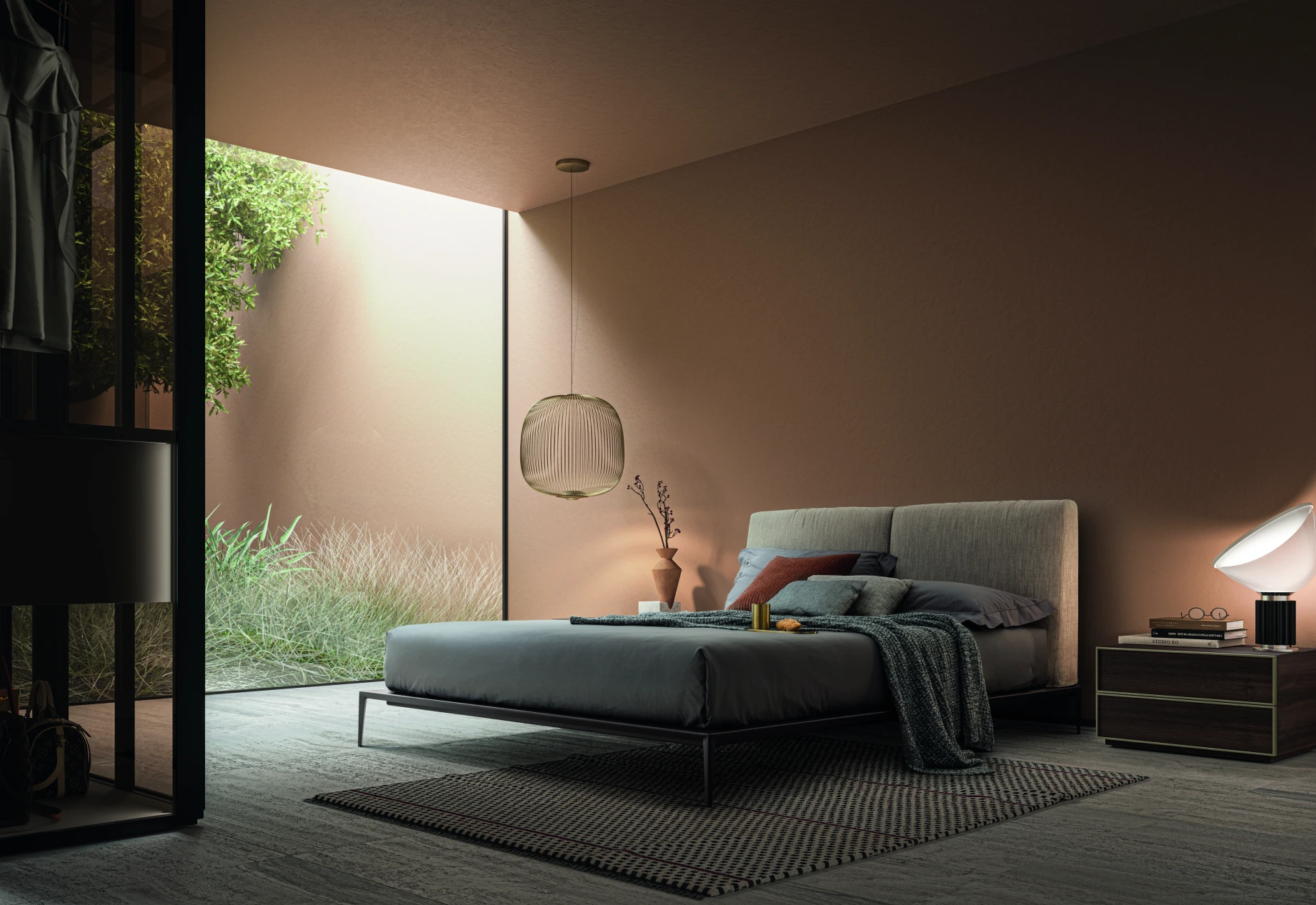 Pat cu cadru metalic vopsit cu pulbere in culoarea Cacao K8019. Tăblie din structură metalică suport, acoperită cu perne tapitate.