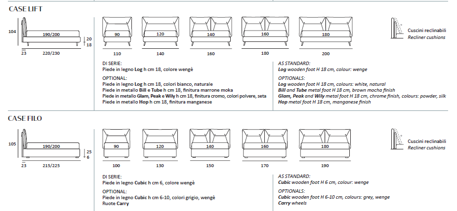 Modelul Case poate fi comandat si in variantele : compatto , lift sau filo .
