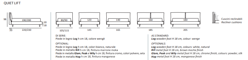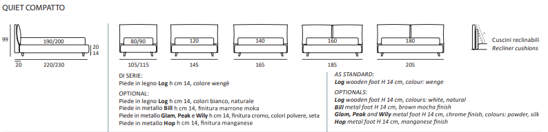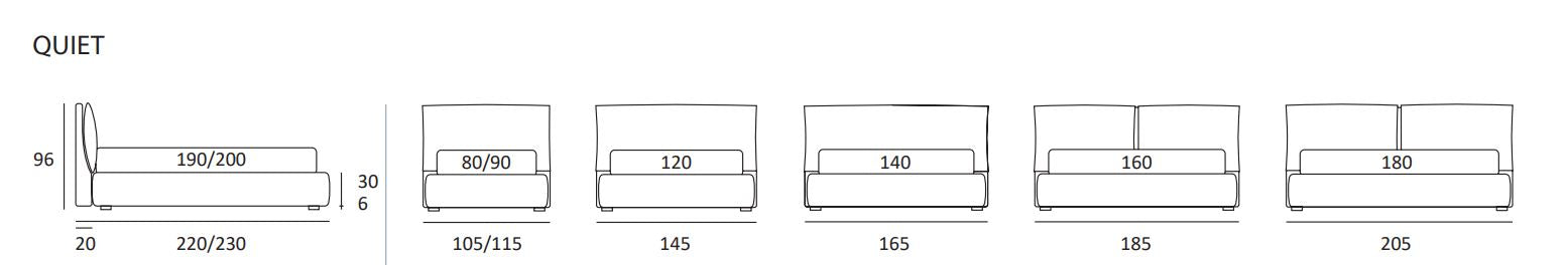 Dimensiuni : L.105/115/145/165/185/205 cm x P.220/230 cu spatar H. 96 cm