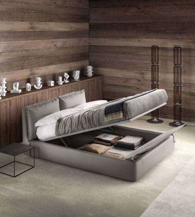 Structura patului este din pal, iar somiera este facuta din lemn stratificat, materiale rezistente de inalta calitate. Patul poate avea si spatiu de depozitare.