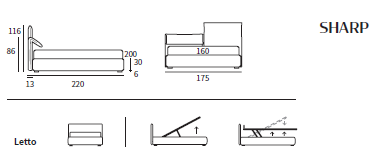 Dimensiuni ext : L.175/195 cm x P.210/220 cm cu spatar H. 116 cm