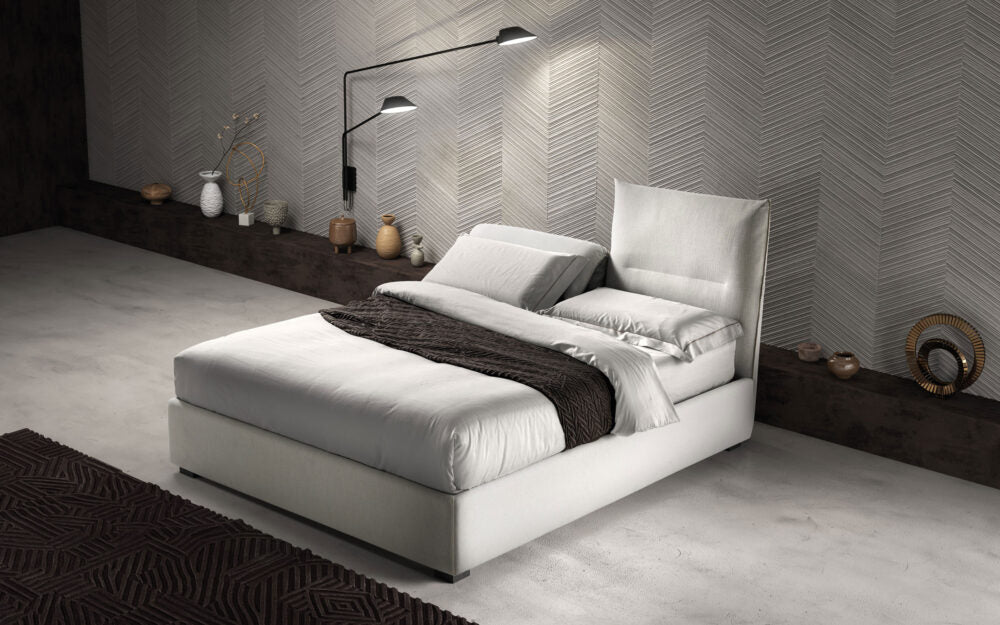 Pat matrimonial Sharp cu design modern, foarte practic. Spatarul format din doua perne rabatabile sporesc confortul, iar faptul ca este in totalitate dehusabil si lavabil ii fac sa fie o alegere potrivita. Disponibil pentru saltea de 160 si 180 cm. Pentru alegerea tesaturii avem la dispozitie o gama variata de culori si materiale. Structura patului este din pal iar somiera din lemn stratificat.