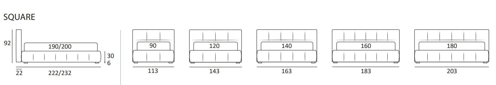 Dimensiuni ext : L.113/143/163/183/203 cm xP.222/232 cm H.36 cu spatar H. 92 cm