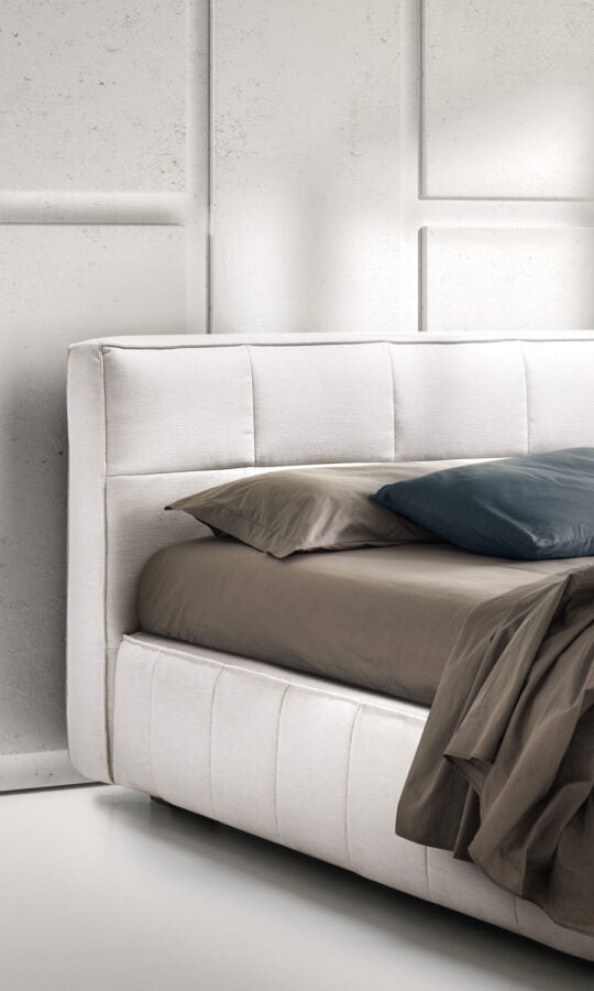 Un pat matrimonial cu desing contemporan, aduce un aer tineresc dormitorului. Disponibil pentru orice marime de saltea, cu structura din pal si somiera din lemn stratificat. Patul este in totalitate dehusabil si lavabil in variantele cu tesatura si partial in cele din piele. Disponibil in varianta cu spatiu de depozitare.